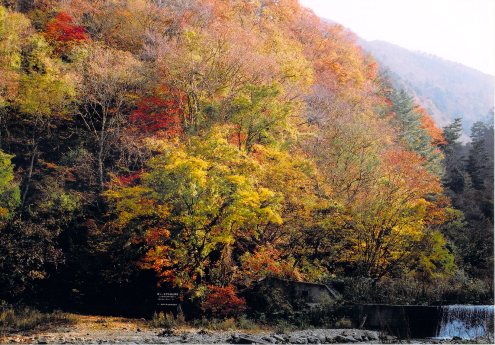 紅葉川渓谷の上流コースが通行止めのため、現在は行く事ができません。途中の霞滝は途中の橋が破損したためのようですが、黒滝へのコースはそれ以前に整備されていないため、道は藪化している上、滝は紅葉川の対岸のドメキ沢にあるため、渡渉しない限り、遠望という事になります。